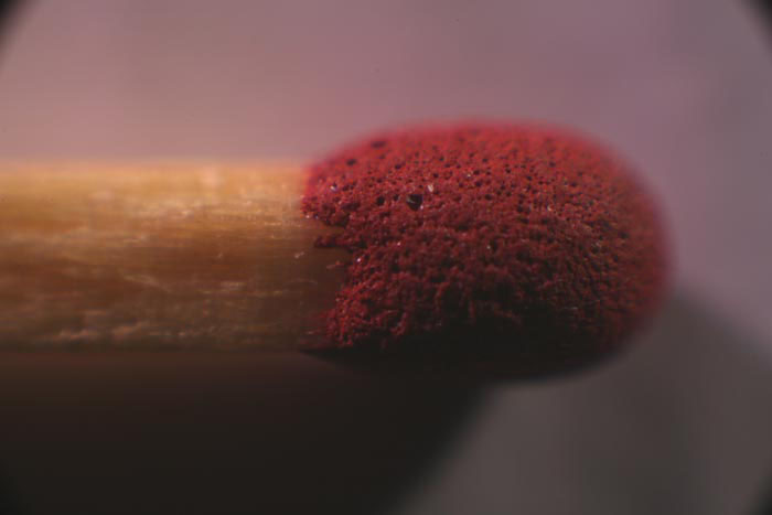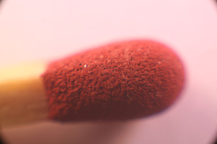 Neben diversen Insekten ist der Streichholzkopf wohl der Klassiker in der Makrofotografie. Das Holz erscheint beim normalen betrachten als glatte Fläche. Erst bei dieser Vergrößerung sieht man die Unebenheiten im Holz. Der Streichholz ist im Maßstab 4:1 abgebildet.